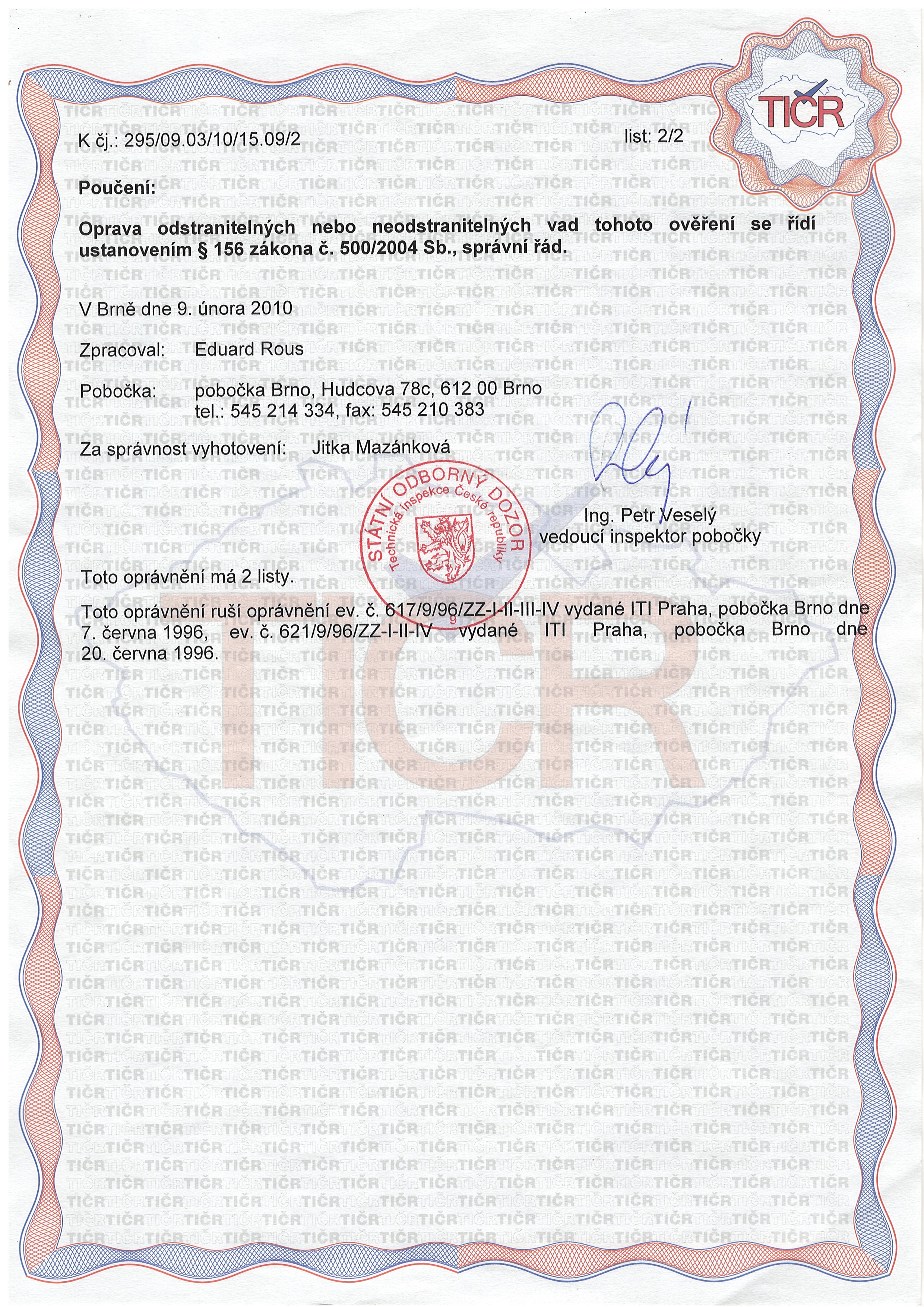 Certifikace dodavatelů + zaměstnanců/Certifikace revize ZZ, školení - Taťák/Certifikat OTZZ/CERTIFIKÁT OTZZ 2. strana.jpg
